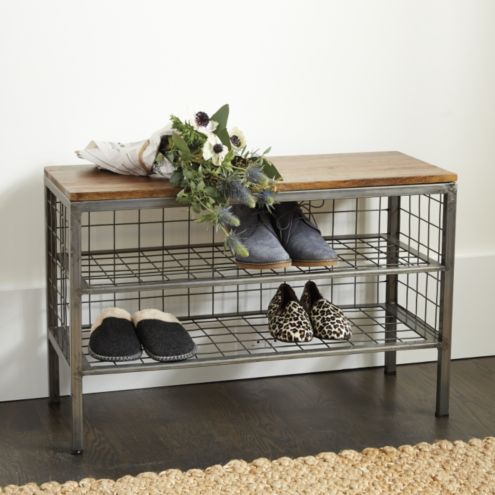 Bench Shoe Rack Tv Stand Oak Wood And Metal Frame Etsy