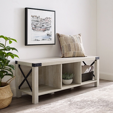 Farmhouse Reimagined Antique White Storage Hall Bench From Liberty