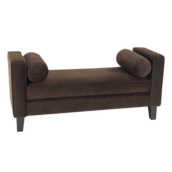 Ave six curves bench with solid wood legs and 2 bolster pillows chocolate velvet fabric by avenue six. Available in chocolate velvet c12 coffee velvet c27. Whether you re getting ready for a new day preparing for sleep or just relaxing this comfy bench is always there for you.
