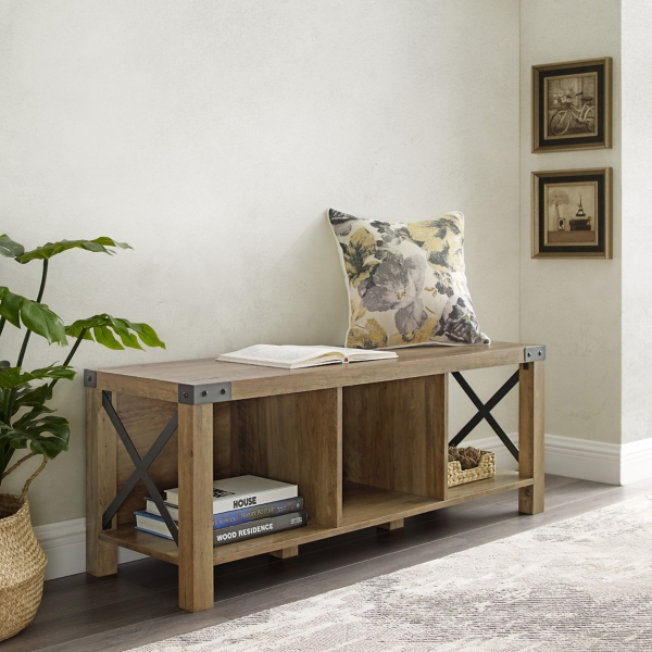 48 Farmhouse Wood Metal Entry Bench In Reclaimed Barnwood