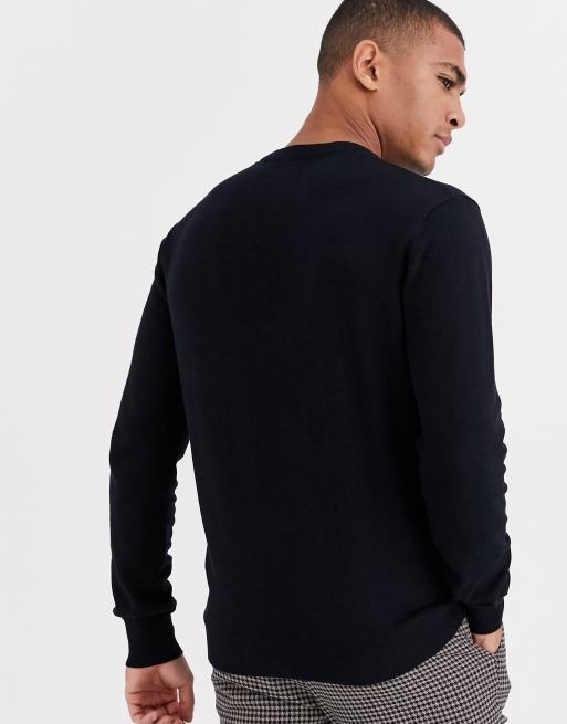 Bench Knitted Crew Neck Sweater In Black Asos