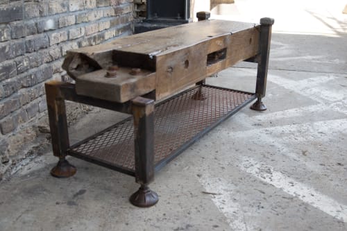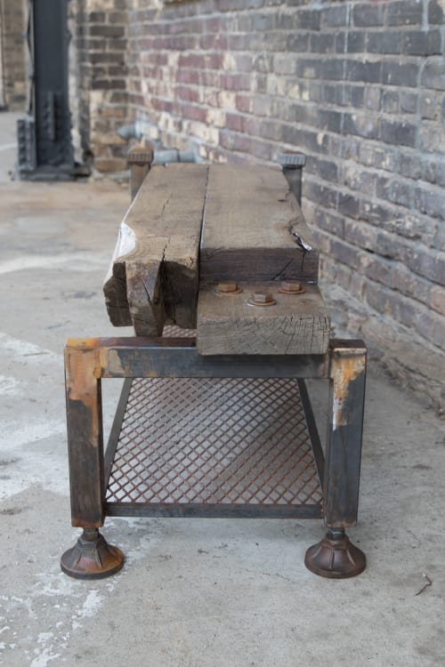 Vintage Oak Timber Bench Cast Iron Leveling Feet By Wettrock Co