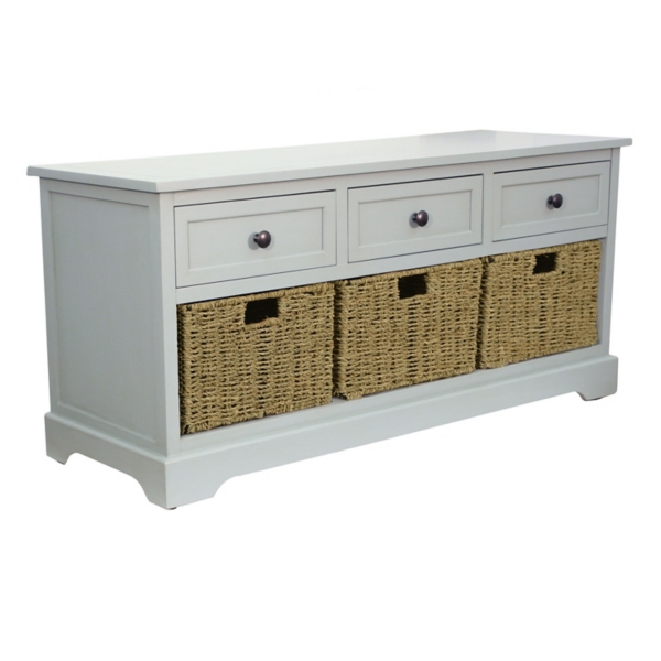Details About White Storage Bench With 2 3 Wicker Baskets Cushion Seat Neutral Hallway Hall Bench With Storage Hallway Storage Bench Storage Bench With Baskets