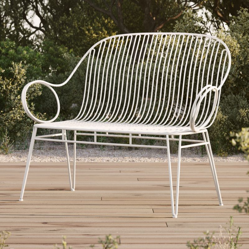 Scroll White Metal Outdoor Bench Reviews Crate And Barrel