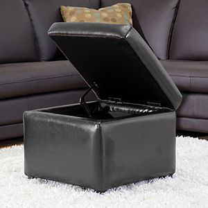 Black Faux Leather Storage Ottoman Chairish