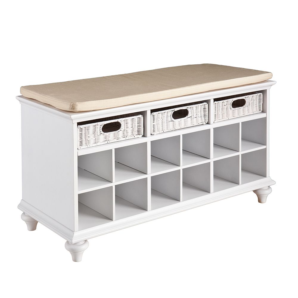 Chelmsford White Entryway Bench Padded Seat Shoe Cubbies Storage