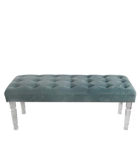 59 L Bench Clear Acrylic Legs Top Grain Blue Leather Diamond