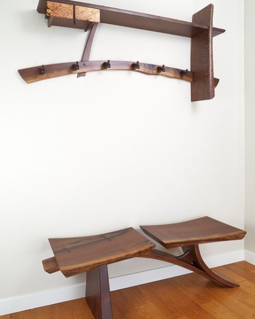 Walnut Bench With Walnut Coat Rack By Brian Hubel Seen At Private