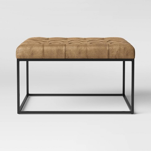 Trubeck Tufted Faux Leather Metal Base Cocktail Ottoman Brown Project 62 Target