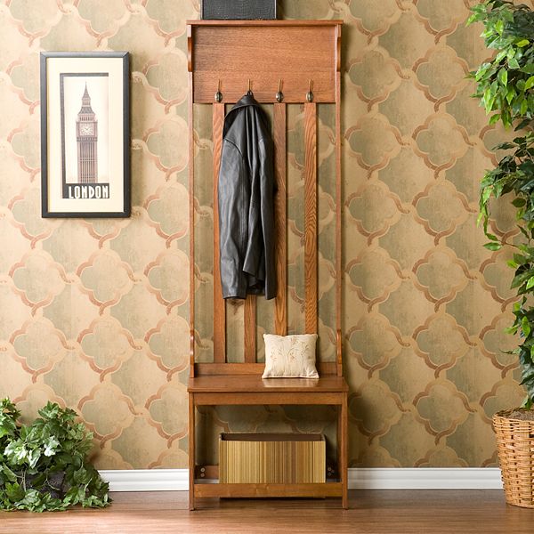 Southern Enterprises Merritt 4 Hook Hall Tree Entry Bench Oak
