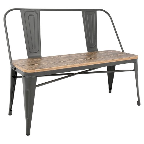 Oregon Industrial Dining Entryway Bench With Gray Frame And Brown