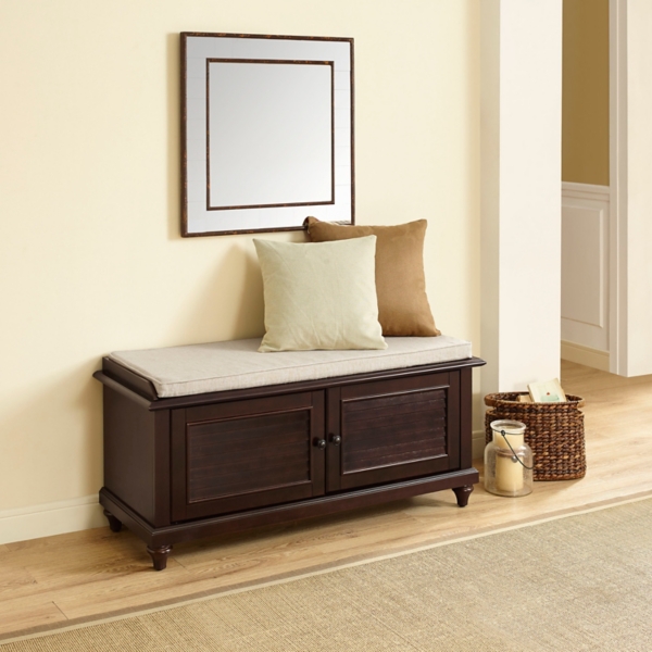 Dorel Penelope Espresso Entryway Storage Bench With Cushion