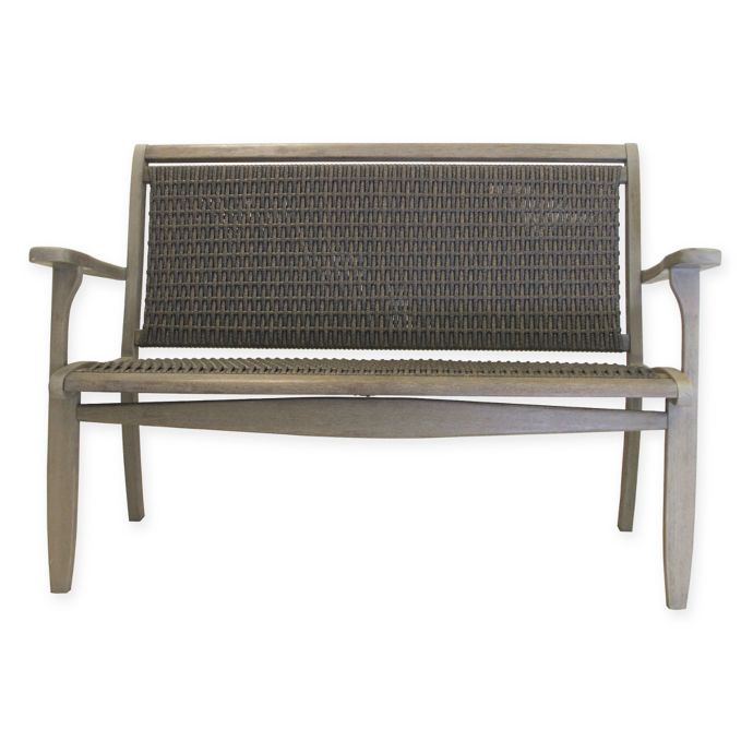 Outdoor Interiors Eucalyptus And Wicker Bench In Grey Bed Bath