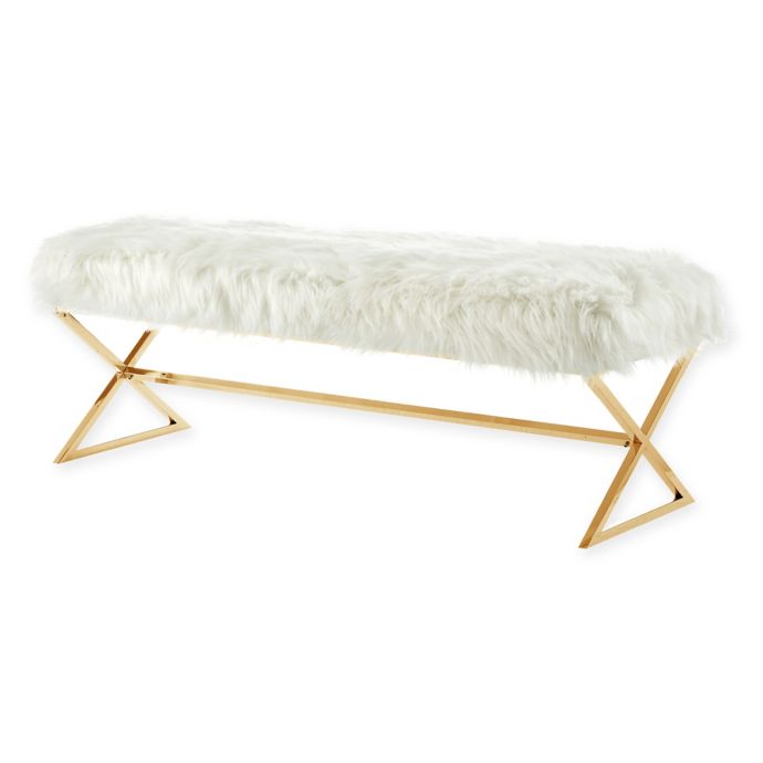 Inspired Home Maggie Faux Fur Bench In White Gold Bed Bath Beyond