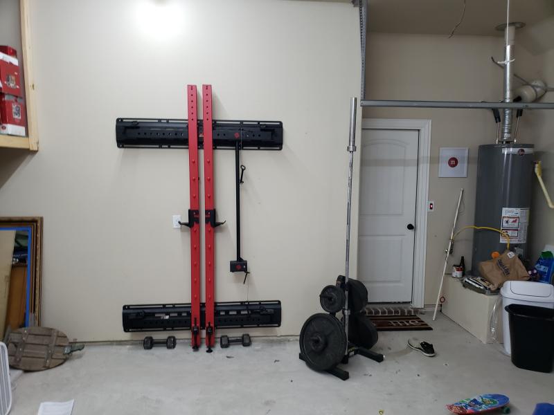 The Space Saving Squat Rack All Folded Up And Out Of The Way