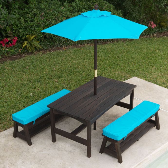Kidkraft Outdoor Table Bench Set With Umbrella Turquoise