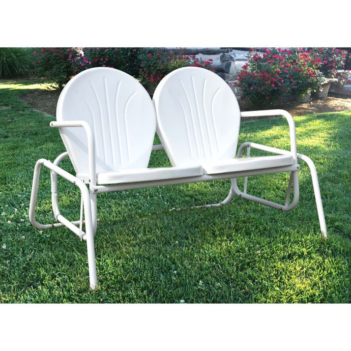 Amerihome Double Seat Metal Patio Glider Chair In White Bed Bath