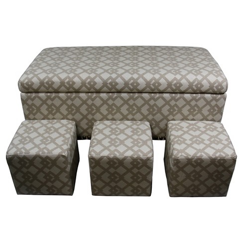 Unbranded 18 In Tufted Grey Storage Bench And 3 Piece Ottoman