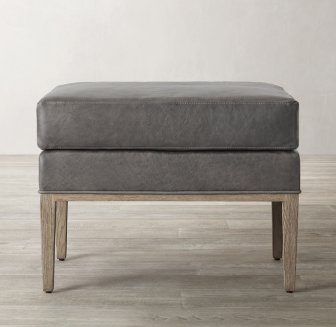 French Contemporary Slope Arm Wingback Leather Ottoman