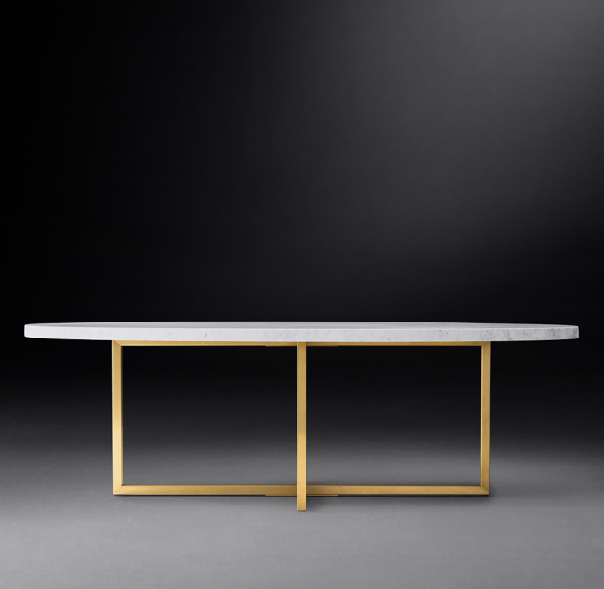 Silhouette Pedestal Oval Dining Table White Marble Antique Brass