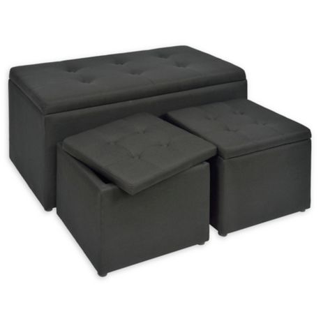 Linen Upholstered Bench Ottomans Set Of 3 Bed Bath Beyond