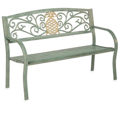 Pineapple Metal Garden Bench Verdigris Plowhearth