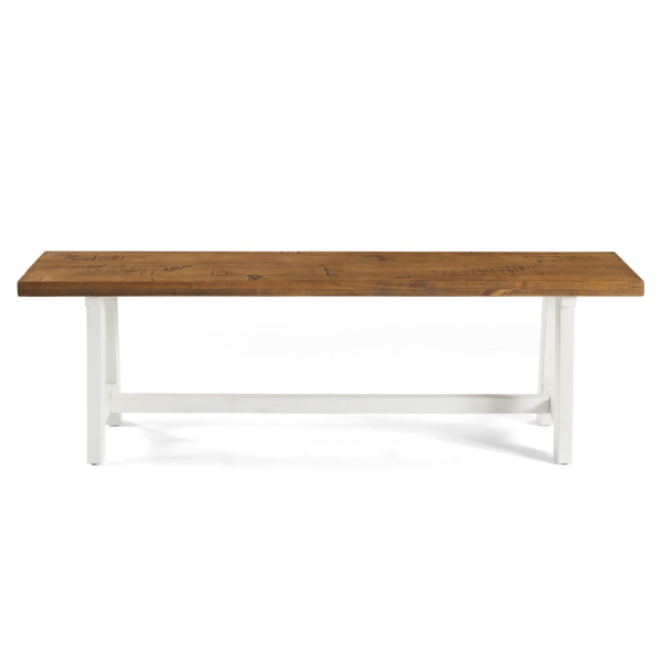 Coastal Farmhouse Reclaimed Wood Trestle Dining Bench 83 White