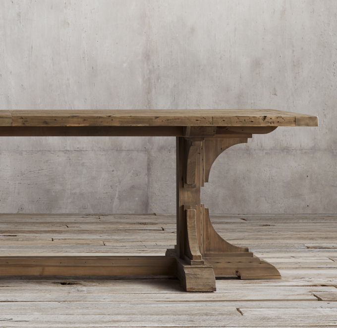 20th C Reclaimed Pine Trestle Rectangular Dining Table
