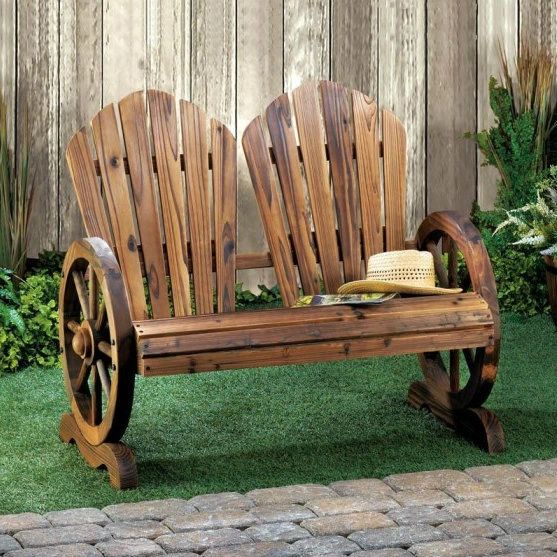 4 3 out of 5 stars 81. Product description with a rustic design reminiscent of pioneers and new frontiers the wagon wheel design of this wood wagon garden bench provides a unique conversation piece for your patio or garden. Posted in outdoor on march 15 2011.