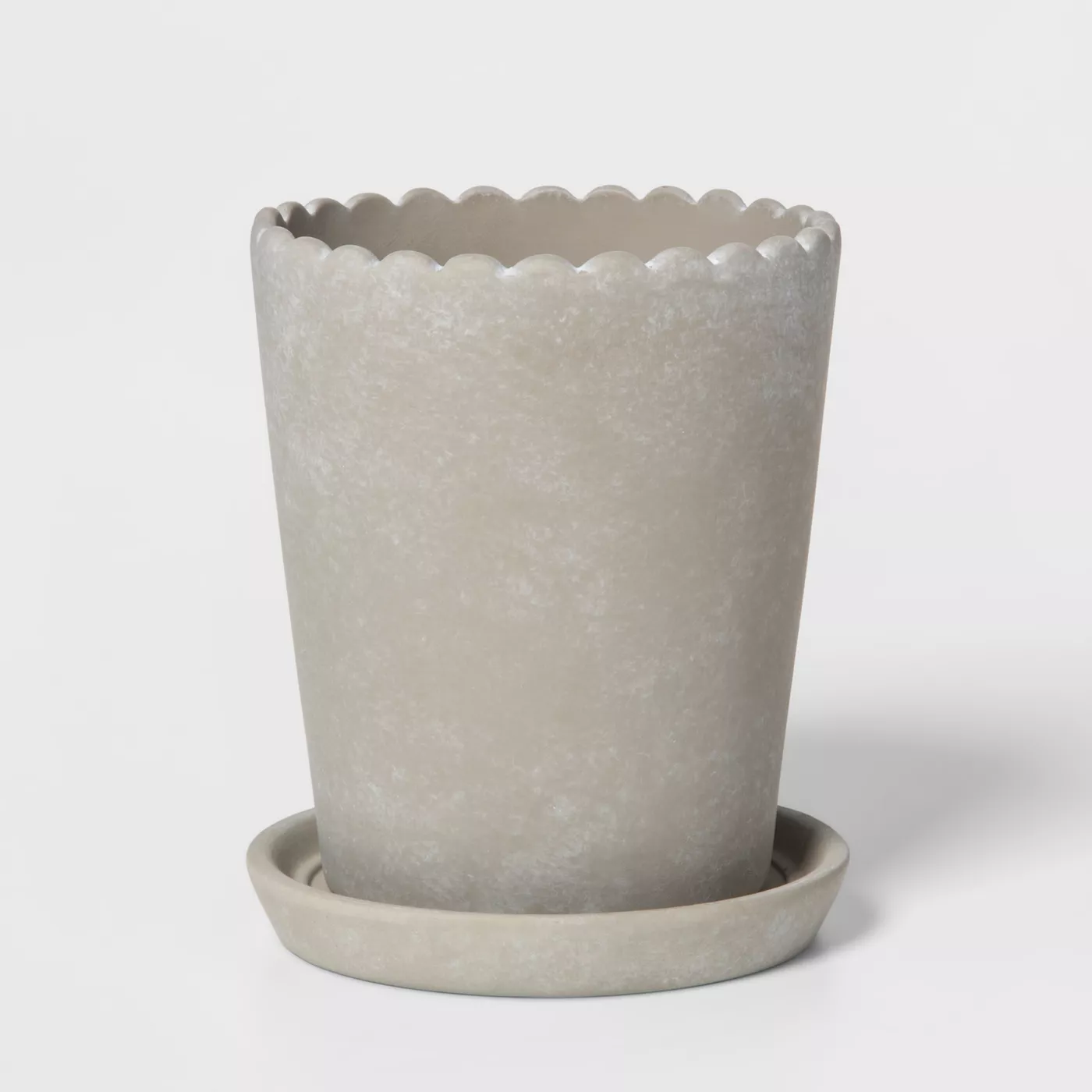 Smith Hawken Teak Wood Planter Round Flower Pot Garden Patio