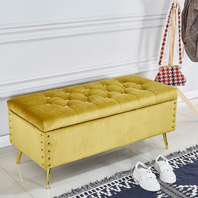 Now Ready Stock Luxury Velvet Bench Sofa Storage With Gold