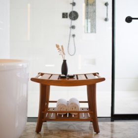 Teak Wood Oversized Shower Bench With Shelf Bed Bath Beyond