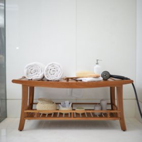 Dussi Solid Teak Wood Large Shower Bench Stool With Shelf