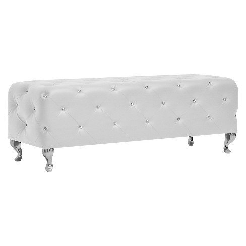 Stella Crystal Tufted Leather Modern Bench White Baxton Studio