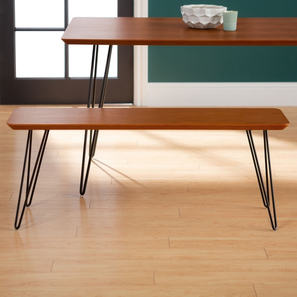 48 Inch Mid Century Modern Dining Bench Walnut By Walker Edison