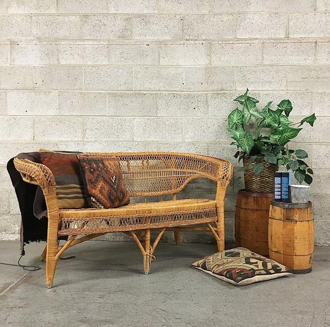Mid Century Wicker Bench Love Seat Wood Rare Indoor Designer