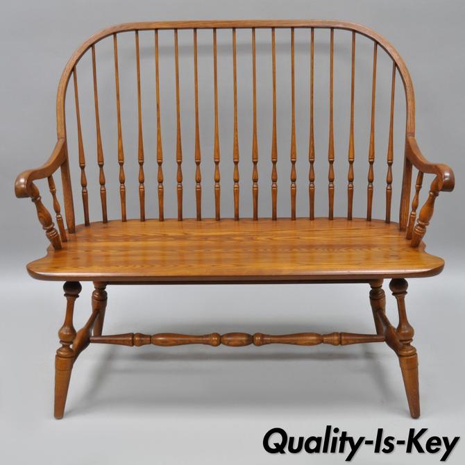Solid Oak Wood Windsor Colonial Style Spindle Back Bench Settee